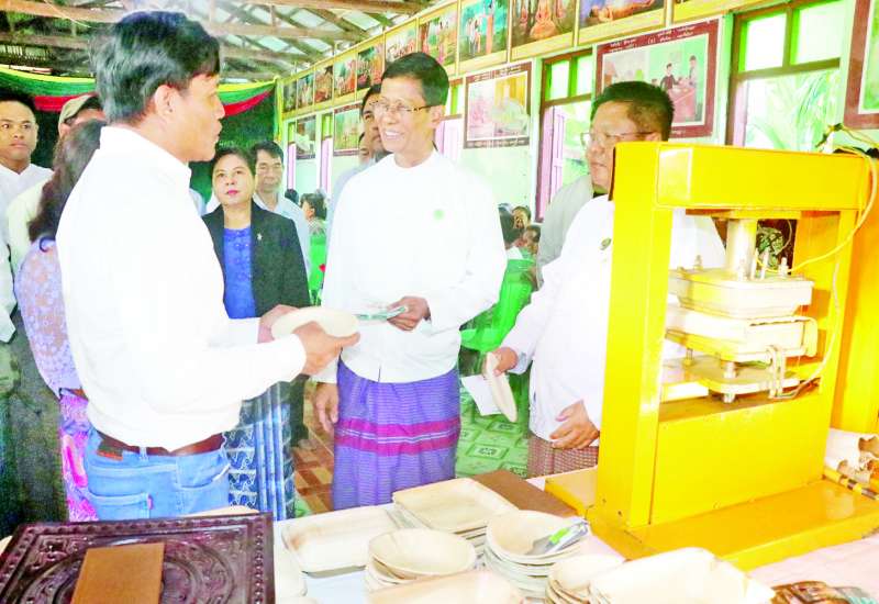 သမဝါယမနှင့် ကျေးလက်ဖွံ့ဖြိုးရေးဝန်ကြီးဌာန ဒုတိယဝန်ကြီး ဦးမြင့်စိုးသည် ဧရာဝတီတိုင်းဒေသကြီး လမ်းပန်းဆက်သွယ်ရေးဝန်ကြီး ဦးနေမျိုးအောင်နှင့်အတူ ယနေ့နံနက်ပိုင်းတွင် ဧရာဝတီတိုင်းဒေသကြီး မြောင်းမြမြို့နယ် ဓနုံးချောင်းကျေးရွာသို့ သွားရောက်ပြီး အသေးစားစက်မှုလက်မှုလုပ်ငန်းဦးစီးဌာနက သင်တန်းပို့ချဆောင်ရွက်ပေးလျက်ရှိသည့် ဒေသထွက်ကုန်ကွမ်းသီးဖတ်မှ တန်ဖိုးမြင့်လူသုံးပစ္စည်းများ ထုတ်လုပ်ရေးသင်တန်းကို ကြည့်ရှုအားပေးသည်။