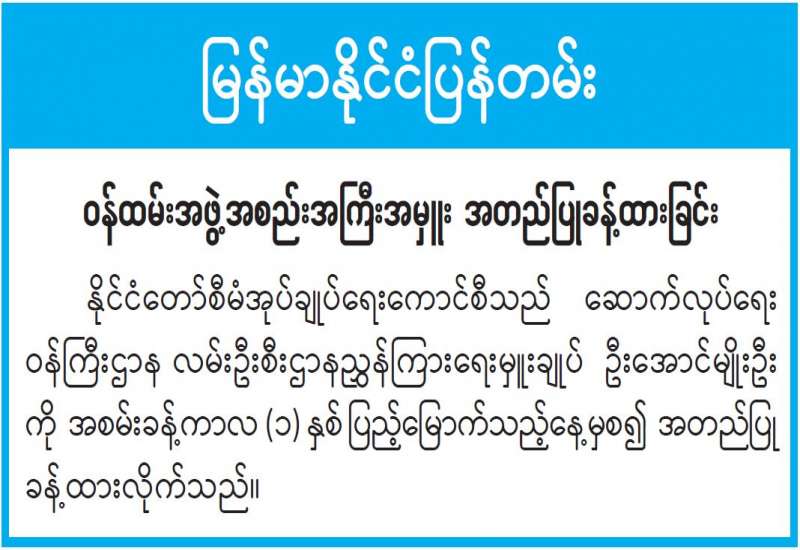 မြန်မာနိုင်ငံယှဉ်ပြိုင်မှုကော်မရှင်ပုံမှန်အစည်းအဝေး (၄/၂၀၂၄) ကို ယနေ့နံနက် ၁၀ နာရီတွင် နေပြည်တော်ရှိ စီးပွားရေးနှင့် ကူးသန်းရောင်းဝယ်ရေးဝန်ကြီးဌာန မြန်မာနိုင်ငံယှဉ်ပြိုင်မှုကော်မရှင်ရုံး အစည်းအဝေးခန်းမ၌ ကျင်းပသည်။