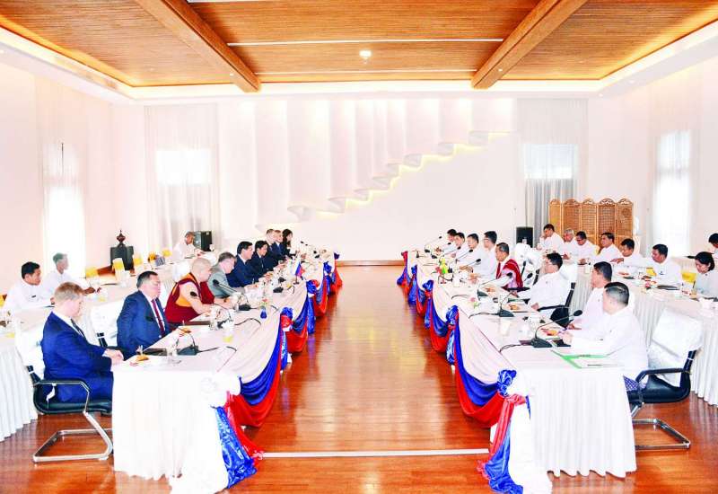 နိုင်ငံတော်စီမံအုပ်ချုပ်ရေးကောင်စီဥက္ကဋ္ဌ နိုင်ငံတော်ဝန်ကြီးချုပ် ဗိုလ်ချုပ်မှူးကြီးမင်းအောင်လှိုင်သည် ရုရှားဖက်ဒရေးရှင်းနိုင်ငံ၊ ကာလ်မီးကီယာပြည်နယ်အကြီးအကဲ H.E. Mr. Batu KHASIKOV ဦးဆောင်သော ကိုယ်စားလှယ်အဖွဲ့အား ယနေ့နံနက်ပိုင်းတွင် နေပြည်တော်ရှိ နိုင်ငံတော်စီမံအုပ်ချုပ်ရေးကောင်စီဥက္ကဋ္ဌရုံး သံတမန်ဆောင်ဧည့်ခန်းမ၌ လက်ခံတွေ့ဆုံသည်။