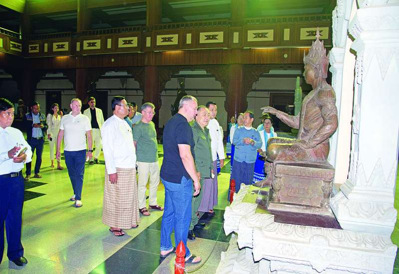 ရုရှားဖက်ဒရေးရှင်းနိုင်ငံ ဒူးမားလွှတ်တော်ဒုတိယဥက္ကဋ္ဌ H.E.Mr.Sholban Kara-Ool ဦးဆောင်သော ကိုယ်စားလှယ်အဖွဲ့သည် ယနေ့နံနက် ၈ နာရီခွဲတွင် မန္တလေးတိုင်းဒေသကြီး ညောင်ဦးမြို့နယ် ပုဂံရှေးဟောင်းယဉ်ကျေးမှုနယ်မြေသို့ လေကြောင်းခရီးဖြင့် ရောက်ရှိရာ မန္တလေးတိုင်းဒေသကြီးအစိုးရအဖွဲ့ လူမှုရေးရာဝန်ကြီး ဦးအောင်ကျော်မိုး၊ တိုင်းဒေသကြီးဥပဒေချုပ် ဦးမြင့်အောင်၊ ရှေးဟောင်းသုတေသနနှင့် အမျိုးသားပြတိုက်ဦးစီးဌာန ညွှန်ကြားရေးမှူးချုပ် ဒေါက်တာကျော်ဦးလွင်နှင့် တာဝန်ရှိသူများက ပုဂံ-ညောင်ဦးလေဆိပ်၌ ကြိုဆိုနှုတ်ဆက်ကြသည်။