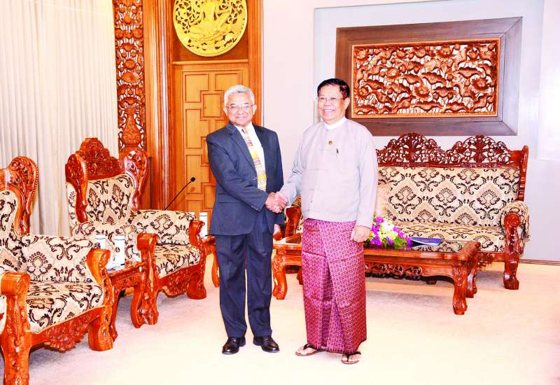 ဒုတိယဝန်ကြီးချုပ်နှင့် နိုင်ငံခြားရေးဝန်ကြီးဌာန ပြည်ထောင်စုဝန်ကြီးဦးသန်းဆွေသည် မြန်မာနိုင်ငံဆိုင်ရာ အိန္ဒိယသံအမတ်ကြီး H.E.Mr.Abhay Thakur ကို ယနေ့နံနက် ၁၀ နာရီတွင် နေပြည်တော်ရှိ နိုင်ငံခြားရေးဝန်ကြီးဌာန၌ လက်ခံတွေ့ဆုံသည်။