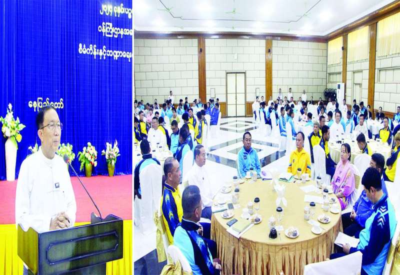 ၂၀၂၄ ခုနှစ် ပဉ္စမအကြိမ် အမျိုးသားအားကစားပွဲတော်တွင် ပါဝင်ယှဉ်ပြိုင်မည့် ဝန်ကြီးဌာနကိုယ်စားပြု အားကစားအဖွဲ့များအား တွေ့ဆုံပွဲအခမ်းအနားကို ယနေ့မွန်းလွဲပိုင်းတွင် နေပြည်တော်ရှိ စီမံကိန်းနှင့်ဘဏ္ဍာရေးဝန်ကြီးဌာန ရုံးအမှတ်(၃၄)၌ ကျင်းပသည်။