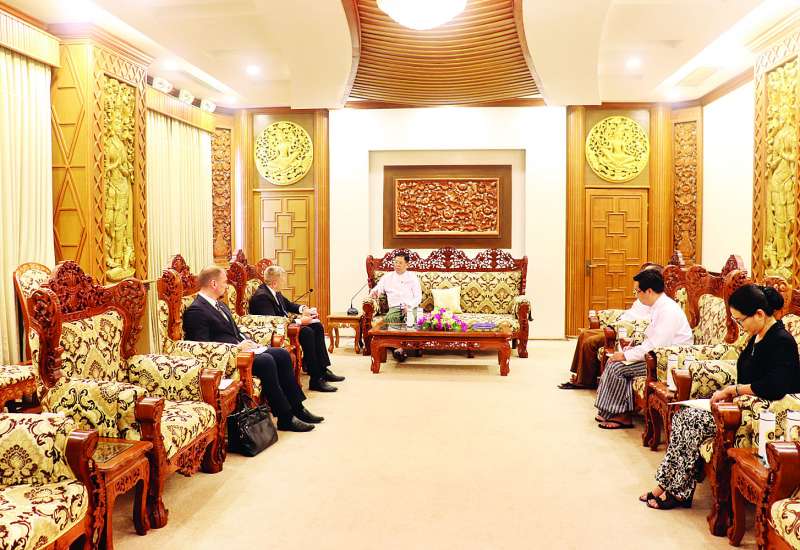 ဒုတိယဝန်ကြီးချုပ်နှင့် နိုင်ငံခြားရေးဝန်ကြီးဌာန ပြည်ထောင်စုဝန်ကြီး ဦးသန်းဆွေသည် ဟနွိုင်းမြို့အခြေစိုက်မြန်မာနိုင်ငံဆိုင်ရာ ဘယ်လာရုစ်သံအမတ်ကြီး H.E. Mr. Uladzimir Baravikou အား ယနေ့မွန်းလွဲ ၂ နာရီတွင် နေပြည်တော်ရှိ နိုင်ငံခြားရေးဝန်ကြီးဌာန ပြည်ထောင်စုဝန်ကြီး၏ ဧည့်ခန်းမ၌ တွေ့ဆုံသည်။
