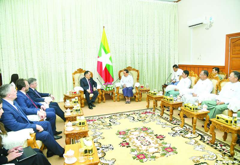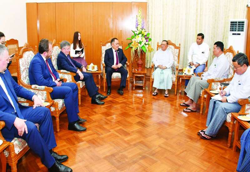 နိုင်ငံတော်စီမံအုပ်ချုပ်ရေးကောင်စီအဖွဲ့ဝင် ဦးဝဏ္ဏမောင်လွင်သည် ရုရှားဖက်ဒရေးရှင်းနိုင်ငံ ဒူးမားလွှတ်တော် ဒုတိယဥက္ကဋ္ဌ H.E.Mr.Sholban Kara-Ool ဦးဆောင်သည့် ကိုယ်စားလှယ်အဖွဲ့ကို ယနေ့မွန်းလွဲပိုင်းတွင် နေပြည်တော်ရှိ နိုင်ငံတော်စီမံအုပ်ချုပ်ရေးကောင်စီဝင်ရုံး ဧည့်ခန်းမ၌ လက်ခံတွေ့ဆုံသည်။