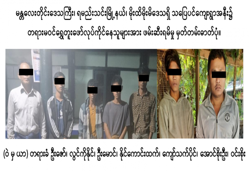 အကြမ်းဖက်အုပ်စုအဖြစ် ကြေညာထားသည့် CRPH ၊ NUG နှင့် ယင်းတို့၏ လက်ဝေခံအဖွဲ့အစည်းများ၊ ယင်းတို့နှင့် ဆက်နွှယ်နေသော အဖွဲ့အစည်းများ၊ လူပုဂ္ဂိုလ်များသည် နိုင်ငံတော်တည်ငြိမ်အေးချမ်းရေးကို ပျက်ပြားစေရန်နှင့် အစိုးရယန္တရားများ ပျက်ပြားစေရန် ရည်ရွယ်လျက် လှုံ့ဆော်ခြင်း၊ ဝါဒဖြန့်ခြင်းများ ပြုလုပ်ခဲ့မှုအပေါ် ဥပဒေနှင့်အညီ ထိရောက်စွာ အရေးယူသွားမည်ဖြစ်ကြောင်းနှင့် ထိုသို့လှုံ့ဆော်သူ၊ ဝါဒဖြန့်သူများအား ဆက်လက်ဖော်ထုတ်အရေးယူသွားမည်ဖြစ်ကြောင်း မိဘပြည်သူများ သိရှိနိုင်ရေး အသိပေးသတင်းထုတ်ပြန်ပြီးဖြစ်သည်။