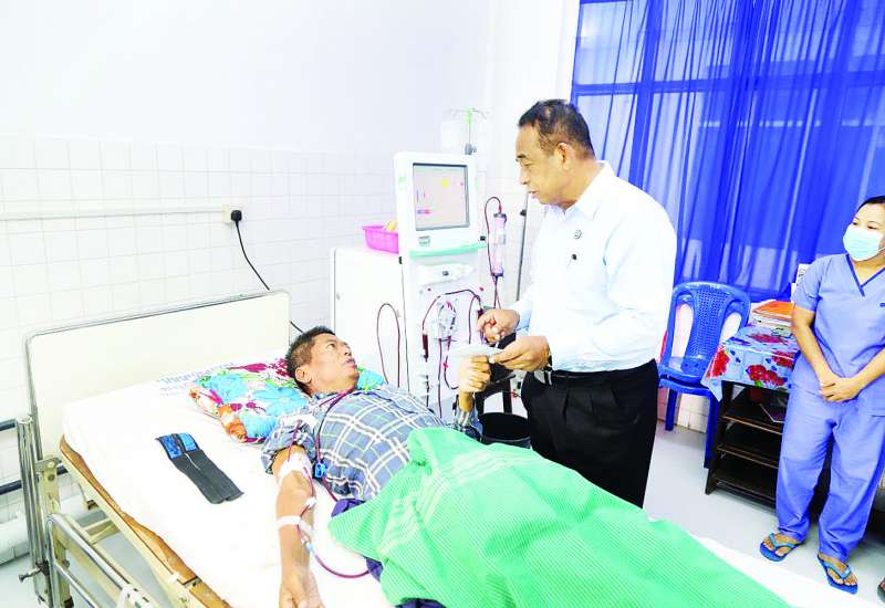 အလုပ်သမားဝန်ကြီးဌာန ပြည်ထောင်စုဝန်ကြီး ဦးမြင့်နောင်သည် ယနေ့နံနက်ပိုင်းတွင် ရန်ကုန်တိုင်းဒေသကြီး တာမွေမြို့နယ်ရှိ လူမှုဖူလုံရေးအဖွဲ့ပိုင် အလုပ်သမားဆေးရုံကြီးမှ ဝန်ထမ်းများနှင့်တွေ့ဆုံပြီး ဆေးရုံတက်ရောက်ကုသနေသောလူနာများကို ကြည့်ရှုအားပေးသည်။