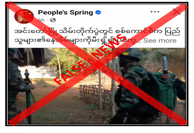 စစ်ကိုင်းတိုင်းဒေသကြီး၊ အင်းတော်မြို့နယ်အတွင်းရှိ နေအိမ်များကို လုံခြုံရေးတပ်ဖွဲ့ဝင်များက မီးရှို့ဖျက်ဆီးနေသည်ဟု တရားမဝင်ပြည်ဖျက်မီဒီယာများက သတင်းအမှားများ မဟုတ်မမှန် ရေးသားဖြန့်ဝေလျက်ရှိကြောင်း တွေ့ရသည်။