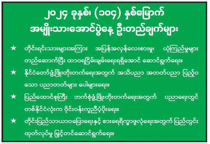 ၂၀၂၄ ခုနှစ်၊ (၁၀၄) နှစ်မြောက် အမျိုးသားအောင်ပွဲနေ့ ဦးတည်ချက်များ