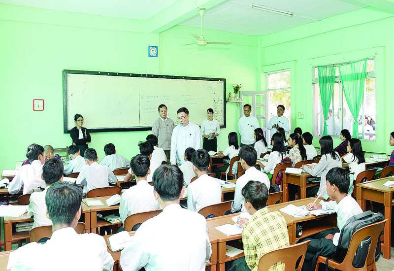 ပညာရေးဝန်ကြီးဌာန ပြည်ထောင်စဝန်ကြီး ဒေါက်တာညွန့်ဖေသည် ယနေ့နံနက်ပိုင်းတွင် Naypyitaw State Academy နှင့် အမှတ် (၁၁) အခြေခံပညာအထက်တန်းကျောင်းသို့ သွားရောက်ကြည့်ရှုစစ်ဆေးသည်။