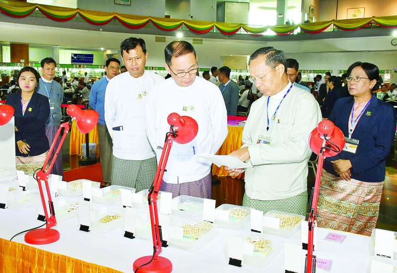၂၀၂၄ ခုနှစ် နှစ်လယ် မြန်မာ့ကျောက်မျက်ရတနာပြပွဲ ဒုတိယနေ့ကို ယနေ့နံနက်ပိုင်းတွင် နေပြည်တော်ရှိ မဏိရတနာကျောက်စိမ်းခန်းမ၌ ဆက်လက်ကျင်းပရာ မြန်မာ့ကျောက်မျက် ရတနာပြပွဲဗဟိုကော်မတီနာယက သယံဇာတနှင့် သဘာဝပတ်ဝန်းကျင် ထိန်းသိမ်းရေးဝန်ကြီးဌာန ပြည်ထောင်စုဝန်ကြီး ဦးခင်မောင်ရီ တက်ရောက်ကြည့်ရှုအားပေးသည်။