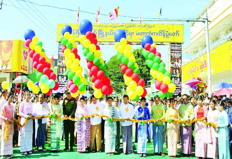 (၅၅)ကြိမ်မြောက် တပ်ကုန်းမြို့နယ်လုံးဆိုင်ရာ မဟာဘုံကထိန်ပွဲတော်ဖွင့်ပွဲအခမ်းအနားကို ယနေ့နံနက်ပိုင်းက နေပြည်တော်ကောင်စီနယ်မြေတပ်ကုန်းမြို့ ဗိုလ်မင်းရောင်ရပ်ကွက်ရှိ သာသနာ့ဗိမာန်အဝင်လမ်းထိပ်၌ကျင်းပရာ ပြန်ကြားရေးဝန်ကြီးဌာန ပြည်ထောင်စုဝန်ကြီး ဦးမောင်မောင်အုန်း၊ နေပြည်တော်ကောင်စီဝင် ဦးဇေယျာလင်း၊ ဗုဒ္ဓသာသနာပြုဗိမာန်ဂေါပကအဖွဲ့၊ ကထိန်ကျင်းပရေးဦးစီးကော်မတီနှင့် မြို့မိမြို့ဖများ၊ ဌာနဆိုင်ရာတာဝန်ရှိသူများ၊ ကျောင်းသား ကျောင်းသူများနှင့် ဖိတ်ကြားထားသည့် ဧည့်သည်တော်များ တက်ရောက်ကြသည်။