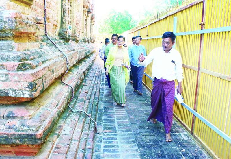 သာသနာရေးနှင့်ယဉ်ကျေးမှုဝန်ကြီးဌာန ဒုတိယဝန်ကြီး ဒေါ်နုမြဇံသည် ယမန်နေ့ နံနက်ပိုင်းတွင် မန္တလေးတိုင်းဒေသကြီး ပုဂံယဉ်ကျေးမှုအမွေအနှစ်ဒေသရှိ ရှေးဟောင်းအဆောက်အအုံများ ပြုပြင်ထိန်းသိမ်းခြင်းနှင့် မိုးကြိုးလွှဲတပ်ဆင်ဆောင်ရွက်ခြင်းတို့ကို လှည့်လည်ကြည့်ရှုစစ်ဆေးသည်။