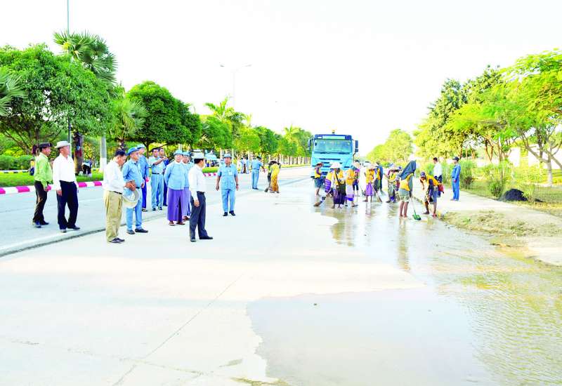 ရန်ကုန်မြို့တော်စည်ပင်သာယာရေးကော်မတီ ဒုတိယဥက္ကဋ္ဌ (ဒုတိယမြို့တော်ဝန်) ဦးညီညီသည် အတွင်းရေးမှူး ဦးညွန့်ဖေ၊ ကော်မတီဝင်များ၊ ဌာနမှူးများ၊ တာဝန်ရှိသူများနှင့်အတူ ယနေ့နံနက် ၇ နာရီခွဲက ဒဂုံမြို့သစ် (မြောက်ပိုင်း) မြို့နယ်တပင်ရွှေထီးလမ်း သန့်ရှင်းသာယာ သပ်ရပ်ရေးဆောင်ရွက်နေမှုအား သွားရောက်ကြည့်ရှုစစ်ဆေးပြီး ရေစီးရေလာကောင်းမွန်စေရေး လမ်းဘေးရေမြောင်းများအတွင်းရှိ အမှိုက်များ ဆယ်ယူရှင်းလင်းရန်၊ လိုအပ်သည့် စက်ယန္တရားအသုံးပြု၍ လမ်းဘေးဝဲယာအမှိုက်များ ရှင်းလင်းရန်နှင့် တပင်ရွှေထီးလမ်း သန့်ရှင်းသာယာသပ်ရပ်ရေးအတွက် သက်ဆိုင်ရာဌာနများ ပူးပေါင်းဆောင်ရွက်ရန် မှာကြားသည်။