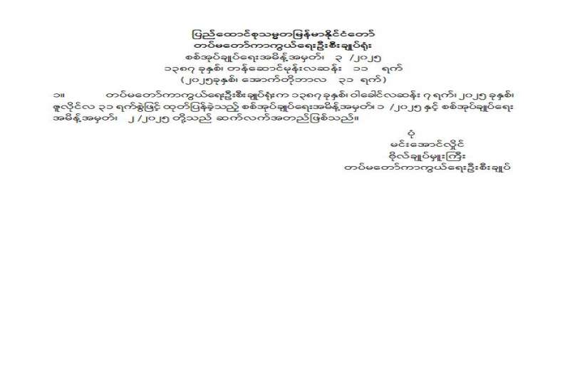အမျိုးသားကာကွယ်ရေးနှင့်လုံခြုံရေးကောင်စီသည် စွမ်းအင်ဝန်ကြီးဌာန၊ ပြည်ထောင်စုဝန်ကြီးရုံး ညွှန်ကြားရေးမှူးချုပ် ဦးထက်သျှန်ဖြိုးကို အစမ်းခန့်ကာလ (၁) နှစ် ပြည့်မြောက်သည့်နေ့မှစ၍ အတည်ပြုခန့်ထားလိုက်သည်။