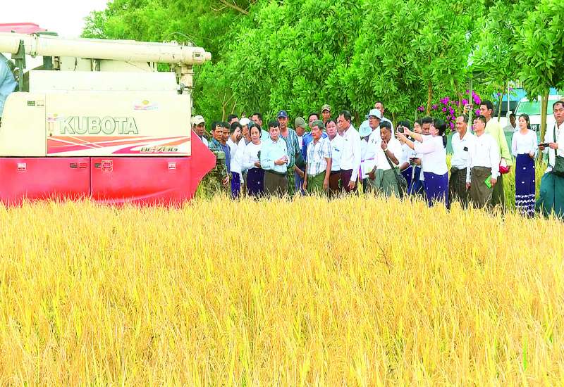 ရန်ကုန်တိုင်းဒေသကြီး ကျောက်တန်းမြို့နယ် မိုးစပါးစံကွက်ရိတ်သိမ်းပွဲကို ယမန်နေ့မွန်းလွဲပိုင်းက ကျုံကန်ကျေးရွာအုပ်စု မိုးစပါးစံပြဧက ၁၀၀ စိုက်ခင်း၌ ကျင်းပရာ စိုက်ပျိုးရေး၊ မွေးမြူရေးနှင့် ဆည်မြောင်းဝန်ကြီးဌာန ဒုတိယဝန်ကြီး ဒေါက်တာတင်ထွဋ်၊ တိုင်းဒေသကြီးနှင့် ခရိုင်အုပ်ချုပ်ရေးအဖွဲ့ဝင်များ၊ မြေ၊ မျိုး၊ ပိုးတာဝန်ခံများ၊ စိုက်ပျိုးရေးကြီးကြပ်မှုကော်မတီအဖွဲ့ဝင်များ၊ ကျေးရွာအုပ်ချုပ်ရေးမှူးများနှင့် တောင်သူများ တက်ရောက်ကြသည်။