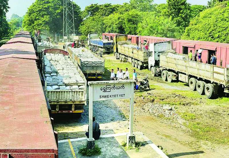 အမျိုးသားသဘာဝဘေးအန္တရာယ်ဆိုင်ရာစီမံခန့်ခွဲမှုကော်မတီအစီအစဉ်ဖြင့် ငလျင်ဘေးဒဏ်ပြန်လည်ထူထောင်ရေးနှင့် တည်ဆောက်ရေးလုပ်ငန်းများအတွက် လိုအပ်လျက်ရှိသော ဆောက်လုပ်ရေးသုံးပစ္စည်းများအား အထူးကုန်ရထားများဖြင့် ပို့ဆောင်ပေးလျက်ရှိရာ စစ်ကိုင်းတိုင်းဒေသကြီးအတွင်းရှိ ပြန်လည်ထူထောင်ရေးနှင့် တည်ဆောက်ရေးလုပ်ငန်းများအတွက် ဘိလပ်မြေအိတ် ၉၇၂၀ (တန်ချိန် ၄၈၆ တန်) တင်ဆောင်လာသော အထူးကုန်ရထားသည် ယနေ့နံနက်ပိုင်းတွင် မန္တလေးမြို့ ရွှေကြက်ယက်ဘူတာသို့ ပို့ဆောင်ရောက်ရှိခဲ့ပြီး တာဝန်ရှိသူများက လာရောက်ကြည့်ရှုစစ်ဆေးလက်ခံခဲ့ကြကာ တိုင်းဒေသကြီးအတွင်း ပြန်လည်ထူထောင်ရေးနှင့် တည်ဆောက်ရေးလုပ်ငန်းများအတွက် ဆက်လက်ဖြန့်ဖြူးပေးသွားမည်ဖြစ်ကြောင်း သိရသည်။