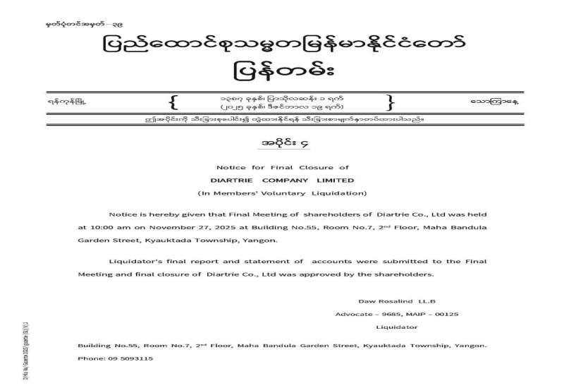 ပြည်ထောင်စုသမ္မတမြန်မာနိုင်ငံတော် ပြန်တမ်း အတွဲ (၇၈) အမှတ် (၅၁) အပိုင်း (၄) အား ဖတ်ရှုနိုင်ပါသည်-