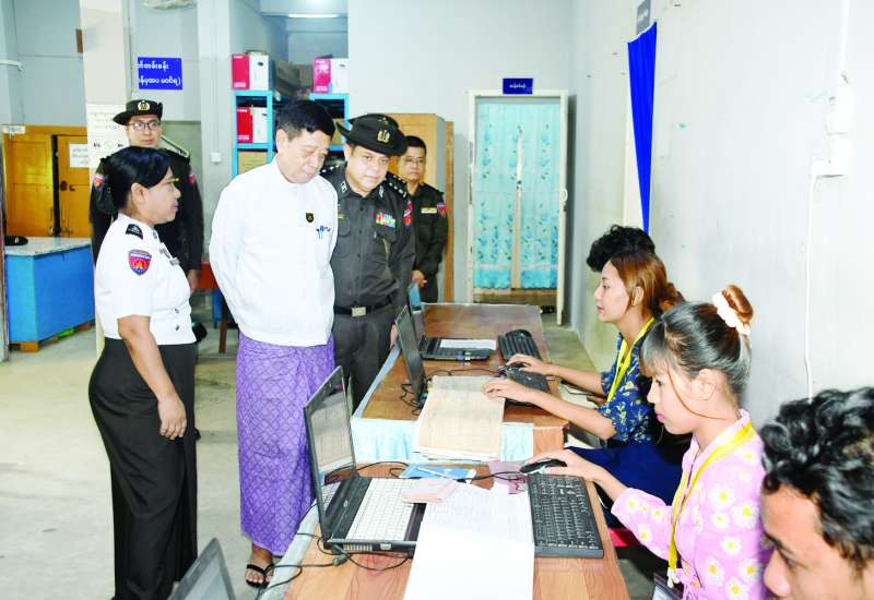 လူဝင်မှုကြီးကြပ်ရေးနှင့် ပြည်သူ့အင်အားဝန်ကြီးဌာန ဒုတိယဝန်ကြီးဦးဌေးလှိုင်နှင့် တာဝန်ရှိသူများသည် ယမန်နေ့မွန်းလွဲပိုင်းက ရန်ကုန်တိုင်းဒေသကြီး လူဝင်မှုကြီးကြပ်ရေးနှင့် ပြည်သူ့အင်အားဝန်ကြီးဌာန လှည်းကူးခရိုင် ဦးစီးမှူးရုံးသို့ရောက်ရှိကြပြီး ခရိုင်ဦးစီးမှူးရုံး၌ e-ID စနစ်ဖြင့် Biographic Data နှင့် Biometric Data များ ကောက်ယူ၍ Unique ID နံပါတ်ထုတ်ပေးနေမှု၊ ပန်းခင်းစီမံချက်အဆင့်(၃)ဖြင့် အိမ်ထောင်စုလူဦးရေစာရင်းနှင့် နိုင်ငံသားစိစစ်ရေးကတ်ပြား ဆောင်ရွက်ပေးနေမှုနှင့် မှတ်တမ်းခန်း၌ ကိုယ်ရေးမှတ်တမ်းများ စနစ်တကျထိန်းသိမ်းထားရှိမှုအခြေအနေတို့ကို လှည့်လည်ကြည့်ရှုစစ်ဆေးကာ လှည်းကူးခရိုင်နှင့် မြို့နယ်ဦးစီးမှူးရုံးတို့မှ ဝန်ထမ်းများနှင့် တွေ့ဆုံသည်။