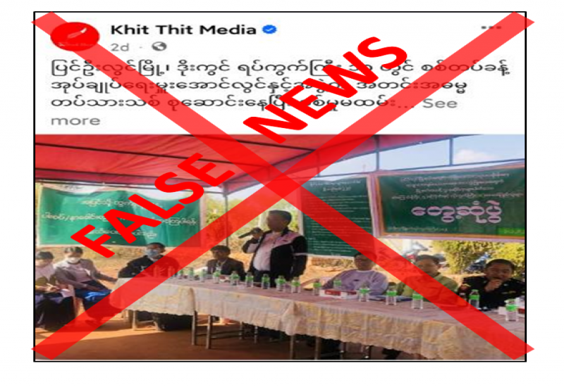 မန္တလေးတိုင်းဒေသကြီး၊ ပြင်ဦးလွင်မြို့၊ ဒိုးကွင်ရပ်ကွက်ကြီး ၁၈ တွင် အုပ်ချုပ်ရေးမှူးနှင့် တာဝန်ရှိသူများက ပြည်သူ့စစ်မှုထမ်းသင်တန်းတက်ရောက်ရန် အတင်းအဓမ္မစုဆောင်းနေပြီး ပြည်သူ့စစ်မှုထမ်းမတက်ရောက်လိုပါက လူငယ် ၁ ဦးလျှင် သိန်း ၈၀ ကျပ် တောင်းခံနေကြောင်း သတင်းတု၊ သတင်းအမှားများကို တရားမဝင်ပြည်ဖျက်မီဒီယာများက လုပ်ကြံရေးသားဝါဒဖြန့်ဝေလျက်ရှိသည်ကို တွေ့ရှိရသည်။