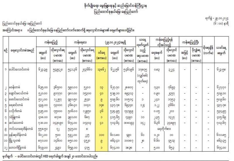 ရန်ကုန်မြို့နှင့် မန္တလေးမြို့အတွက် ရည်ညွှန်းလက်ကားဈေးနှုန်းများနှင့် ပြည်ထောင်စုနယ်မြေ နေပြည်တော်၊ တိုင်းဒေသကြီး/ပြည်နယ် မြို့တော်များအတွက် ရည်ညွှန်းလက်လီဈေးနှုန်းများ