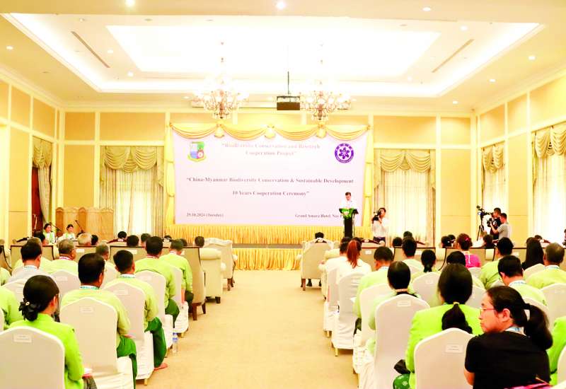 ဇီဝမျိုးစုံမျိုးကွဲဆိုင်ရာ ထိန်းသိမ်းခြင်းနှင့် ရေရှည်ဖွံ့ဖြိုးတိုးတက်ရေးလုပ်ငန်းများတွင် တရုတ်-မြန်မာပူးပေါင်းဆောင်ရွက်ခြင်း (၁၀) နှစ်ပြည့်အခမ်းအနားကို ယနေ့နံနက်ပိုင်းတွင် နေပြည်တော်ရှိ Grand Amara ဟိုတယ်၌ ကျင်းပသည်။
