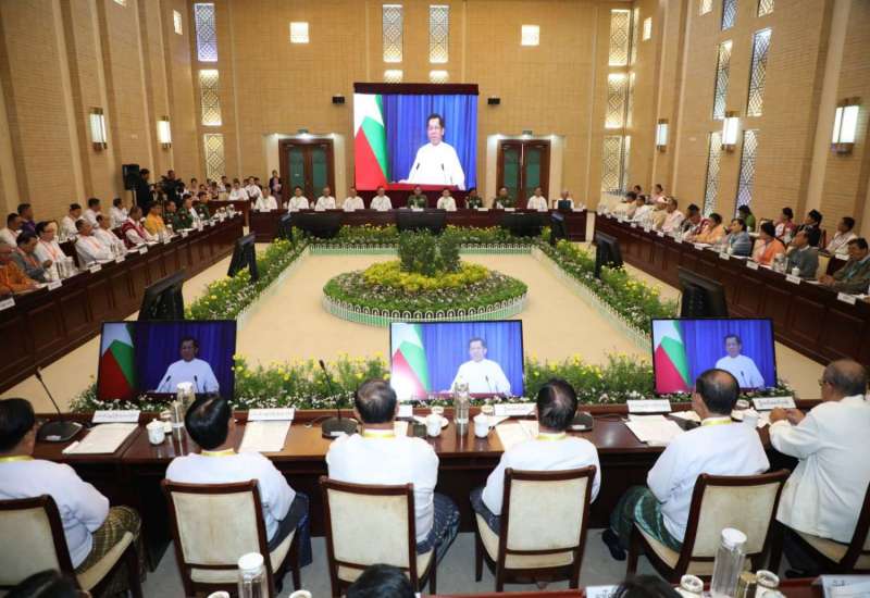 တစ်နိုင်ငံလုံးပစ်ခတ်တိုက်ခိုက်မှုရပ်စဲရေးသဘောတူစာချုပ်(NCA) (၉)နှစ်မြောက် နှစ်ပတ်လည်နေ့အခမ်းအနားကို ယနေ့နံနက်ပိုင်းတွင် နေပြည်တော်ရှိ အမျိုးသားစည်းလုံးညီညွတ်ရေးနှင့် ငြိမ်းချမ်းရေးဖော်ဆောင်မှုဗဟိုဌာန၌ ကျင်းပပြုလုပ်ရာ နိုင်ငံတော်စီမံအုပ်ချုပ်ရေးကောင်စီဥက္ကဋ္ဌ နိုင်ငံတော်ဝန်ကြီးချုပ် အမျိုးသားစည်းလုံးညီညွတ်ရေးနှင့်