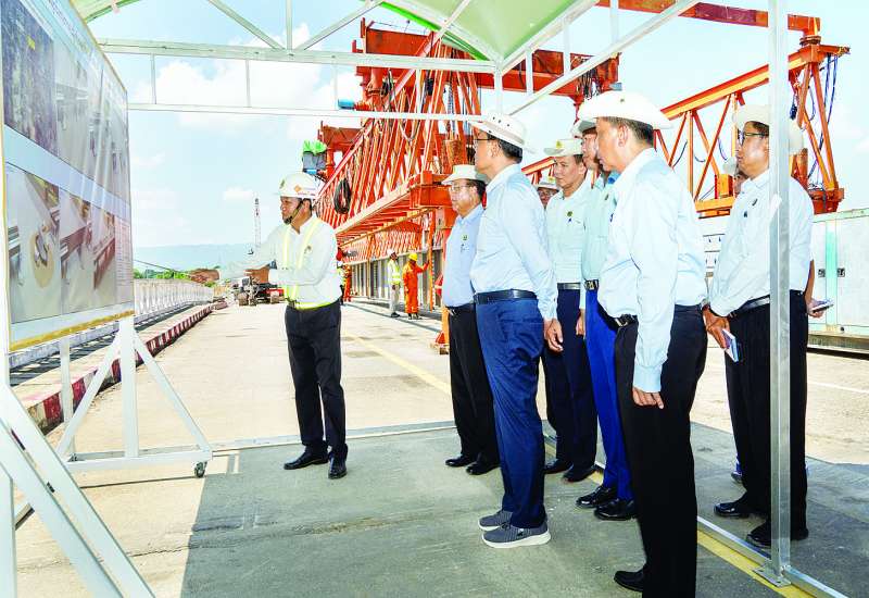 ဆောက်လုပ်ရေးဝန်ကြီးဌာန ပြည်ထောင်စုဝန်ကြီး ဦးမျိုးသန့်သည် ဒုတိယဝန်ကြီး ဦးဝင်းဖေ၊ တာဝန်ရှိသူများနှင့်အတူ ယနေ့တွင် ရန်ကုန် - မန္တလေး ပြည်ထောင်စုလမ်းမကြီး မိုင်တိုင်အမှတ် (၂၄၅/၇) ရှိ နဝင်းချောင်းတံတား (အဆုံ) အား မူလ ၂ လမ်းသွား မှ ၄ လမ်းသွားတံတားအဖြစ် အဆင့်မြှင့်တင် တည်ဆောက်ခြင်းလုပ်ငန်းခွင်အား သွားရောက်ကြည့်ရှုစစ်ဆေးပြီး လုပ်ငန်းလိုအပ်ချက်များ မှာကြားသည်။