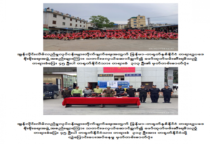 မြန်မာ-တရုတ်နှစ်နိုင်ငံအကြား တရားဥပဒေစိုးမိုးရေးနှင့် အွန်လိုင်းလိမ်လည်မှုလုပ်ငန်းများ တိုက်ဖျက်ရေးအတွက် ပြည်ထဲရေးဝန်ကြီးဌာန၊ မြန်မာနိုင်ငံရဲတပ်ဖွဲ့နှင့် တရုတ်နိုင်ငံပြည်သူ့လုံခြုံရေးဆိုင်ရာဝန်ကြီးဌာနတို့ကြား သတင်းဖလှယ်မှုများဆောင်ရွက်၍ တရားခံများ ဖော်ထုတ်ဖမ်းဆီးရမိနိုင်ရေး စဉ်ဆက်မပြတ်ကြိုးပမ်းဆောင်ရွက်လျက်ရှိသည်။