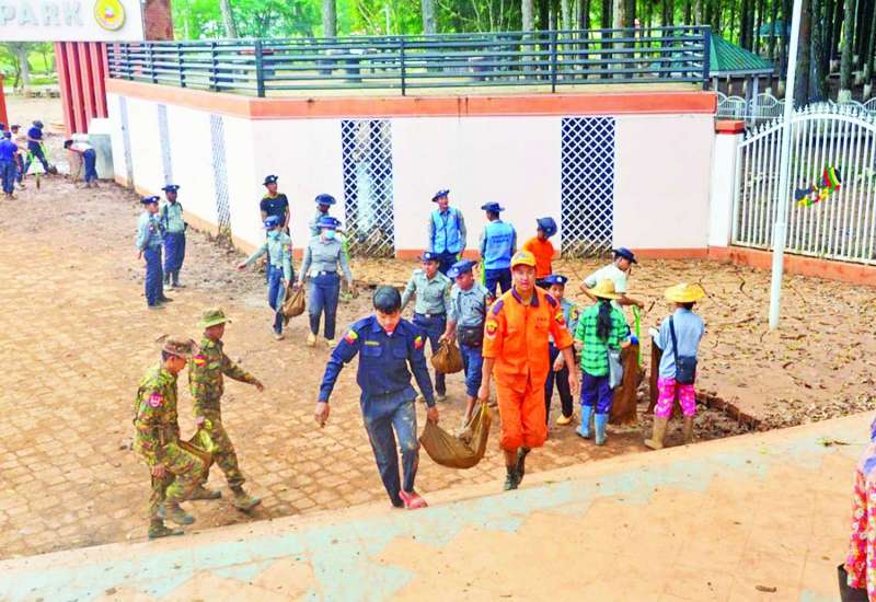 နေပြည်တော်ကောင်စီနယ်မြေအပါအဝင် တိုင်းဒေသကြီးနှင့် ပြည်နယ်များရှိ ရေကြီးရေလျှံမှု ဖြစ်ပေါ်ခဲ့သည့် ရပ်ကွက်/ကျေးရွာများတွင် ကူညီကယ်ဆယ်ရေးလုပ်ငန်းများနှင့် ပြန်လည်ထူထောင်ရေးလုပ်ငန်းများကို အင်တိုက်အားတိုက် တက်ကြွစွာပူးပေါင်းဆောင်ရွက်ပေးလျက်ရှိရာ ယနေ့တွင်လည်း နေပြည်တော်ကောင်စီနယ်မြေ၊ ဇေယျာသီရိမြို့နယ်တွင်လည်းကောင်း၊ ရှမ်းပြည်နယ် (တောင်ပိုင်း)၊ ကလောမြို့နယ်တွင်လည်းကောင်း၊ ကယားပြည်နယ်၊ လွိုင်ကော်မြို့တို့တွင်လည်းကောင်း၊ ပဲခူးတိုင်းဒေသကြီး၊ တောင်ငူမြို့တွင်လည်းကောင်း ဘုန်းတော်ကြီးကျောင်းများ၊ စာသင်ကျောင်းများ၊ ဆေးရုံ၊ ဆေးခန်းများ၊ ဌာနဆိုင်ရာ အဆောက်အဦများတွင် လိုအပ်သည်များကူညီရွှေ့ပြောင်းပေးခြင်းနှင့် သန့်ရှင်းရေးလုပ်ငန်းများ ဆောင်ရွက်ပေးခြင်း၊ လမ်း၊ တံတားများအပေါ်နှင့် ရပ်ကွက်၊ ကျေးရွာများအတွင်း၌ တင်ကျန်ခဲ့သည့်နုန်းများ၊ သစ်ပင်သစ်ကိုင်းများ ဖယ်ရှားပေးခြင်းအပါအဝင် အခြားလိုအပ်သည်များကို တပ်မတော်သားများ၊ မြန်မာနိုင်ငံရဲတပ်ဖွဲ့ဝင်များ၊ မီးသတ်တပ်ဖွဲ့ဝင်များ၊ ကြက်ခြေနီတပ်ဖွဲ့ဝင်များနှင့် လူမှုဝန်ထမ်းကယ်ဆယ်ရေးအဖွဲ့များက ဒေသခံပြည်သူများနှင့်ပူးပေါင်း၍ တက်ကြွစွာ ဆောင်ရွက်ပေးလျက်ရှိသည်။