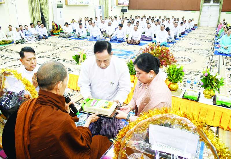 ပြည်ထောင်စုစာရင်းစစ်ချုပ်ရုံးဝန်ထမ်းများက နေပြည်တော်ပျဉ်းမနားမြို့ မင်္ဂလာဗျူဟာ သာသနာ့ဗိမာန်ရှိ ရေဘေးဒဏ်သင့်ပြည်သူများအတွက် ထောက်ပံ့ပစ္စည်းများ ပေးအပ်လှူဒါန်းပွဲကို ယမန်နေ့နံနက် ၁၁ နာရီက အဆိုပါသာသနာ့ဗိမာန်၌ကျင်းပရာ ပြည်ထောင်စုစာရင်းစစ်ချုပ် ဒေါက်တာခင်နိုင်ဦး၊ အမြဲတမ်းအတွင်းဝန်၊ ဌာနဆိုင်ရာအကြီးအကဲများနှင့် တာဝန်ရှိသူများ တက်ရောက်ကြသည်။