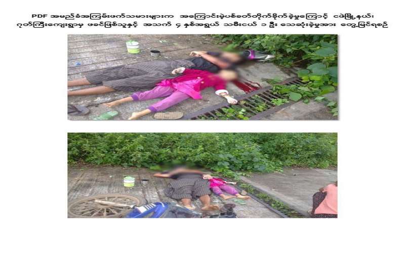 မကွေးတိုင်းဒေသကြီး၊ ငဖဲမြို့နယ်၊ ဂုတ်ကြီးကျေးရွာမှ ဖခင်နှင့် သမီးငယ်တို့ ၂ ဦးသည် ကျေးရွာရှိ တောရဘုန်းတော်ကြီးကျောင်းသို့ ဆွမ်းချိုင့်ပို့ရန် သွားရောက်စဉ် PDF အမည်ခံ အကြမ်းဖက်သမားများက လက်နက်ငယ်များဖြင့် အကြောင်းမဲ့ပစ်ခတ်ခဲ့ရာ ဖခင်ဖြစ်သူနှင့် အသက် ၄ နှစ်အရွယ်သမီးတို့ သေဆုံးခဲ့ကြောင်း သိရှိရသည်။