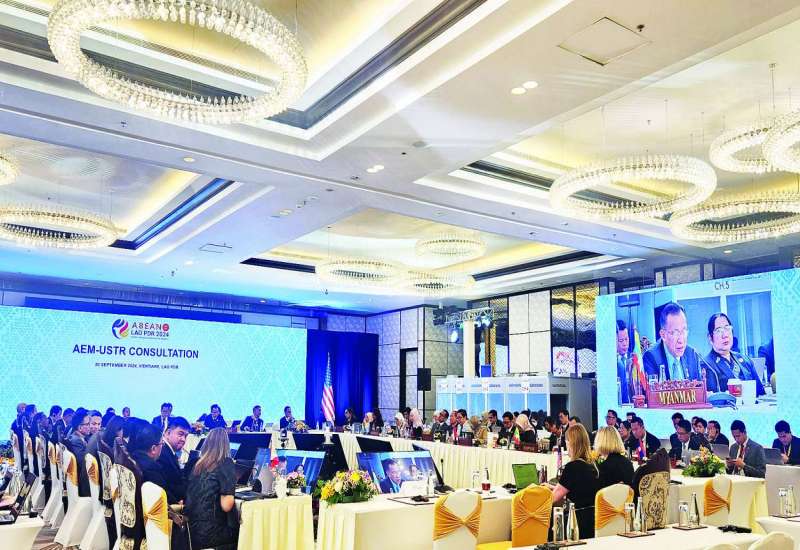 လာအိုနိုင်ငံ ဗီယင်ကျန်းမြို့၌ (၅၆) ကြိမ်မြောက် အာဆီယံစီးပွားရေးဝန်ကြီးများ အစည်းအဝေးနှင့် တစ်ဆက်တစ်စပ်တည်းကျင်းပသော အာဆီယံနှင့် ဆွေးနွေးဖက်နိုင်ငံများအကြား ပြုလုပ်သည့် စီးပွားရေးဝန်ကြီးများ အစည်းအဝေးများသို့ မြန်မာနိုင်ငံ၏ အာဆီယံစီးပွားရေးဝန်ကြီးဖြစ်သူ ရင်းနှီးမြှုပ်နှံမှုနှင့် နိုင်ငံခြားစီးပွားဆက်သွယ်ရေးဝန်ကြီးဌာန ပြည်ထောင်စုဝန်ကြီး ဒေါက်တာ ကံဇော် ဦးဆောင်သော မြန်မာကိုယ်စားလှယ်အဖွဲ့ တက်ရောက်သည်။