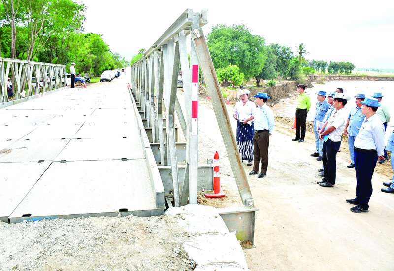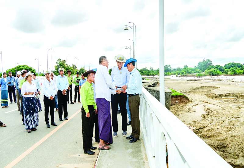 ဆောက်လုပ်ရေးဝန်ကြီးဌာန ပြည်ထောင်စုဝန်ကြီး ဦးမျိုးသန့်သည် နေပြည်တော်စည်ပင်သာယာရေးကော်မတီဥက္ကဋ္ဌ မြို့တော်ဝန် ဦးသန်းထွန်းဦး၊ ဒုတိယမြို့တော်ဝန်၊ တာဝန်ရှိသူများနှင့်အတူ ယနေ့တွင် သဘာဝဘေးကြောင့် ပျက်စီးခဲ့သော နေပြည်တော် စည်ပင်သာယာရေးကော်မတီ၏ လမ်း၊ တံတားများ ယာယီပြင်ဆင်ပြီးစီးသည့် အခြေအနေ၊ အခိုင်အမာပြင်ဆင်တည်ဆောက်မည့် အစီအမံနှင့် ဆင်သေချောင်း၏ ပြင်ဆင်ထိန်းသိမ်းခြင်း ဆောင်ရွက်ရမည့်အခြေအနေတို့ကို ကွင်းဆင်းကြည့်ရှုစစ်ဆေးသည်။