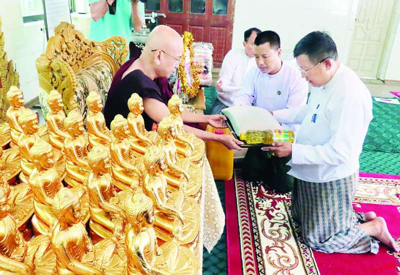 နေပြည်တော်ကောင်စီနယ်မြေ တပ်ကုန်းမြို့နယ် မဟာသီဟနာဒကျောင်းတိုက်တွင် ယာယီရေဘေးရှောင်နေသော ဆရာတော်သံဃာတော်များနှင့် သီလရှင်များအား သင်္ကန်းနှင့် လှူဖွယ်ဝတ္ထုပစ္စည်းများ ဆက်ကပ်လှူဒါန်းခြင်းအခမ်းအနားကို ယနေ့နံနက် ၉ နာရီတွင် အဆိုပါကျောင်းတိုက်၌ ကျင်းပရာ သာသနာရေးနှင့်ယဉ်ကျေးမှုဝန်ကြီးဌာန ပြည်ထောင်စုဝန်ကြီး ဦးတင်ဦးလွင်၊ ဒုတိယဝန်ကြီးများ၊ အမြဲတမ်းအတွင်းဝန်၊ ညွှန်ကြားရေးမှူးချုပ်များနှင့် တာဝန်ရှိသူများ တက်ရောက်ကြသည်။