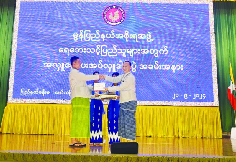 ရာဂိမုန်တိုင်းကြောင့် နေပြည်တော်ကောင်စီနယ်မြေအပါအဝင် တိုင်းဒေသကြီးနှင့် ပြည်နယ်အသီးသီးတို့တွင် ရေကြီးရေလျှံမှုများကြောင့် ပျက်စီးဆုံးရှုံးမှုများ ဖြစ်ပေါ်ခဲ့သည့် ရေဘေးသင့်ပြည်သူများအတွက် အလှူငွေပေးအပ်ပွဲကို ယနေ့ညနေပိုင်းတွင် မွန်ပြည်နယ်၊ မော်လမြိုင်မြို့၊ ပြည်နယ်ခန်းမ၌ ပြုလုပ်ရာ ပြည်နယ်ဝန်ကြီးချုပ် ဦးအောင်ကြည်သိန်း၊ အရှေ့တောင်တိုင်းစစ်ဌာနချုပ် တိုင်းမှူး ဗိုလ်ချုပ်ကျော်လင်းမောင်၊ ပြည်နယ်အစိုးရအဖွဲ့ဝင် ဝန်ကြီးများ၊ ပြည်နယ်အဆင့် ဌာနဆိုင်ရာများ၊ မြို့မိ/ မြို့ဖများနှင့် အလှူရှင်များ၊ လူမှုရေးအသင်းအဖွဲ့များ၊ ပရဟိတအဖွဲ့များ တက်ရောက်ကြသည်။