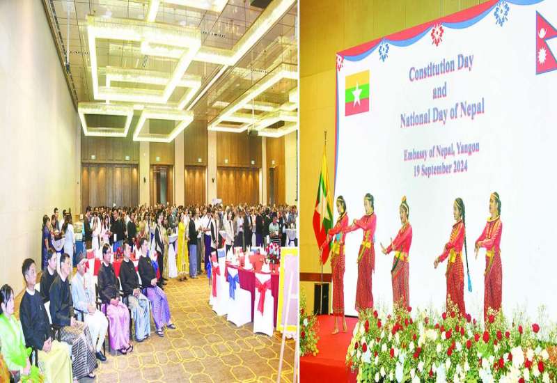 နီပေါနိုင်ငံ၏ အခြေခံဥပဒေရေးဆွဲခြင်း (၁၀)နှစ်မြောက်အထိမ်းအမှတ်နေ့နှင့် အမျိုးသားနေ့အထိမ်းအမှတ်ဧည့်ခံပွဲအခမ်းအနားကို ယနေ့ ည ၆ နာရီခွဲတွင် ရန်ကုန်မြို့ Pan Pacific Hotel ၌ ကျင်းပရာ ဒုတိယဝန်ကြီးချုပ်နှင့် ပို့ဆောင်ရေးနှင့်ဆက်သွယ်ရေးဝန်ကြီးဌာန ပြည်ထောင်စုဝန်ကြီး ဗိုလ်ချုပ်ကြီး မြထွန်းဦး တက်ရောက်သည်။