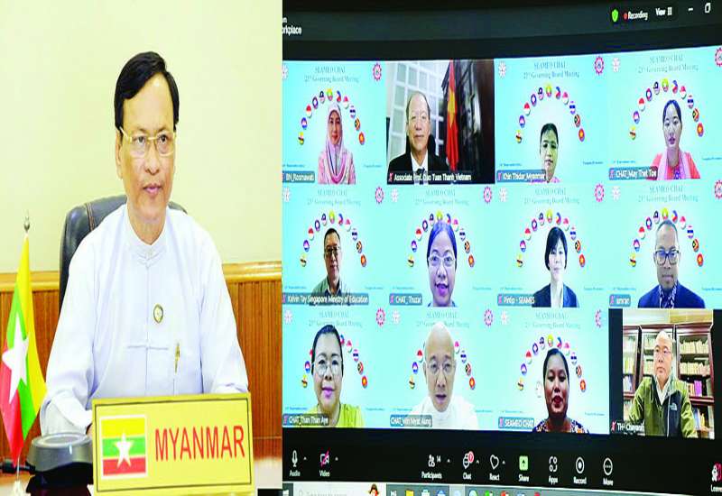 ပညာရေးဝန်ကြီးဌာန ဒုတိယဝန်ကြီး ဒေါက်တာဇော်မြင့်သည် ယနေ့နံနက် ၁၀ နာရီတွင် video conferencing စနစ်ဖြင့် ကျင်းပသည့် ဆီမီယိုဒေသဆိုင်ရာ သမိုင်းနှင့် ရိုးရာဓလေ့ဌာန၏ (၂၃)ကြိမ်မြောက် စီမံခန့်ခွဲရေးအဖွဲ့အစည်းအဝေးသို့ တက်ရောက်သည်။