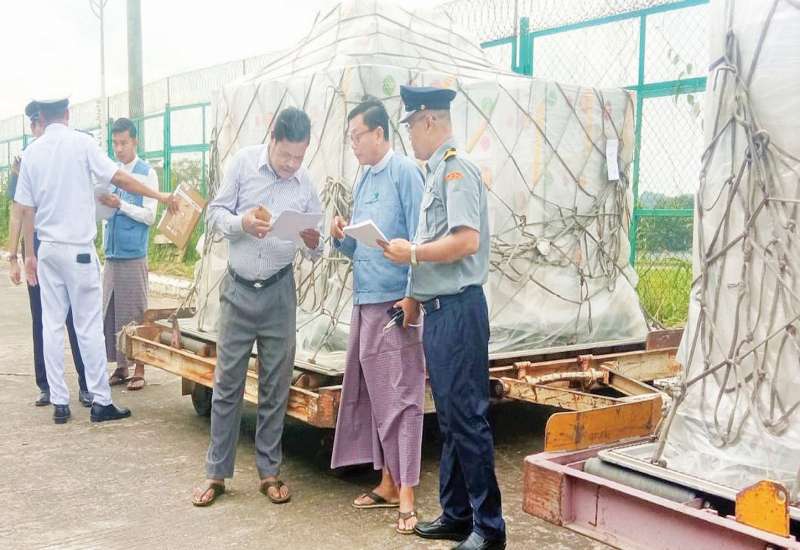 The ASEAN Coordinating Centre for Humanitarian Ass-istance on Disaster Manage-ment (AHA Centre) မှ ရေဘေးသင့်ဒေသများအတွက် လှူဒါန်းသည့် ကယ်ဆယ်ရေးပစ္စည်းများသည် ထိုင်းနိုင်ငံ Disaster Emer-gency Logistics System for ASEAN (DELSA) Warehouse မှတစ်ဆင့် မြန်မာအမျိုးသားလေကြောင်းလိုင်း MNA UB-2020 လေယာဉ်ဖြင့် ယနေ့နံနက် ၁ နာရီတွင် ရန်ကုန်အပြည်ပြည်ဆိုင်ရာလေဆိပ်သို့ ရောက်ရှိသည်။