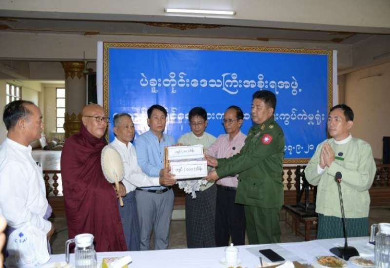 တိုင်ဖွန်းမုန်တိုင်း ရာဂီ၏ အရှိန်ကြောင့် ရေဘေးဒဏ်ခံခဲ့ရသော နေပြည်တော်ကောင်စီနယ်မြေနှင့် တပ်ကုန်းမြို့နယ်အတွင်းရှိ ဘုန်းတော်ကြီးကျောင်းများသို့ သင်္ကန်းဒွိစုံ ၆၀၀၊ သင်္ကန်းခြင်း ၃၁ ခြင်းအပါအဝင် ရဟန်းအသုံးအဆောင်ပစ္စည်းများနှင့် အလှူငွေကျပ်သိန်း ၁၀၀ ပေးအပ်လှူဒါန်းပွဲအခမ်းအနားကို ယနေ့နံနက်ပိုင်းတွင် ရန်ကုန်တိုင်းဒေသကြီး ဗဟန်းမြို့နယ် အလယ်ရွှေဂုံတိုင်ရပ်ကွက် ရွှေမင်းဝံသာသနာ့ရိပ်သာ၌ ကျင်းပပြုလုပ်သည်။