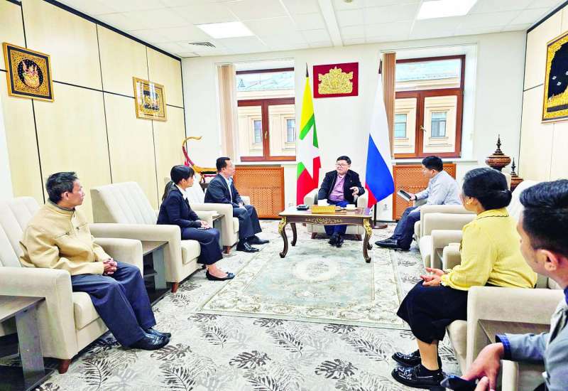 ရုရှားဖက်ဒရေးရှင်းနိုင်ငံ စိန့်ပီတာစဘတ်မြို့၌ ကျင်းပမည့် သတ္တမအကြိမ် ကမ္ဘာလုံးဆိုင်ရာ ငါးလုပ်ငန်းဖိုရမ်နှင့် ရေထွက်ကုန်စည်ပြပွဲ (VII Global Fishery Forum & Seafood Expo Russia) တက်ရောက်ရန် စိန့်ပီတာစဘတ်မြို့၌ ရောက်ရှိနေသည့် စိုက်ပျိုးရေး၊ မွေးမြူရေးနှင့် ဆည်မြောင်းဝန်ကြီးဌာန ဒုတိယဝန်ကြီး ဒေါက်တာအောင်ကြီး ဦးဆောင်သည့် မြန်မာကိုယ်စားလှယ်အဖွဲ့သည် စက်တင်ဘာ ၁၆ ရက်က စိန့်ပီတာစဘတ်မြို့ရှိ မြန်မာနိုင်ငံကောင်စစ်ဝန်ရုံး အရာထမ်း၊ အမှုထမ်းများ၊ ဝန်ထမ်းမိသားစုများနှင့် တွေ့ဆုံအားပေးစကားပြောကြားသည်။