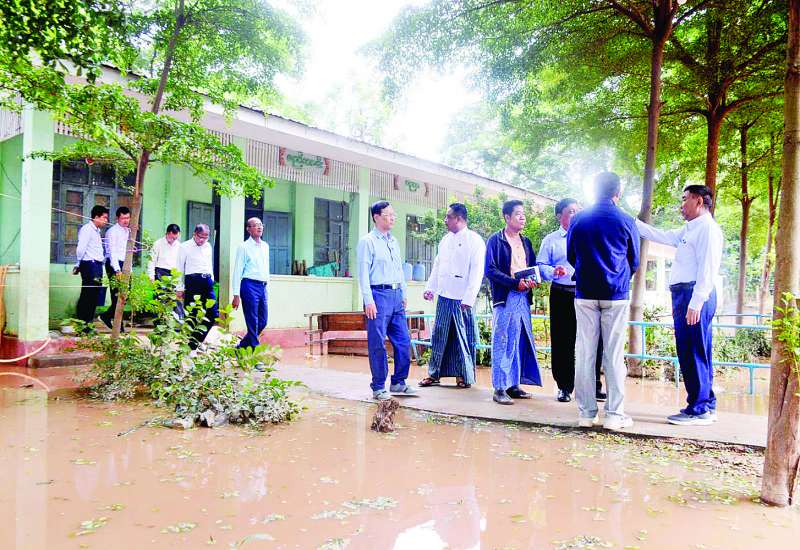 ပညာရေးဝန်ကြီးဌာန ပြည်ထောင်စုဝန်ကြီး ဒေါက်တာညွန့်ဖေသည် ဒုတိယဝန်ကြီး ဒေါက်တာဇော်မြင့်နှင့် ဒေါက်တာမိုးဇော်ထွန်း၊ တာ၀န်ရှိသူများနှင့်အတူ ယနေ့နံနက်ပိုင်းတွင် ရာဂီမုန်တိုင်းအရှိန်ကြောင့် မိုးကြီးကာ ရေနစ်မြုပ်မှုများ ဖြစ်ပေါ်ခဲ့သည့် ပုဗ္ဗသီရိ၊ ဇေယျာသီရိနှင့် လယ်ဝေးမြို့နယ်တို့ရှိ အခြေခံပညာကျောင်းများသို့ သွားရောက်ကြည့်ရှုစစ်ဆေးသည်။
