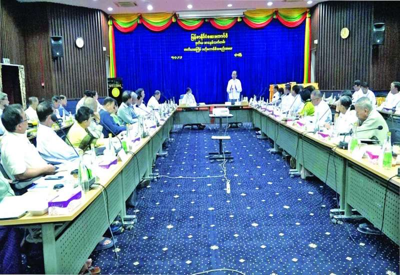 မြန်မာနိုင်ငံဆေးကောင်စီ ဒုတိယလေးနှစ်သက်တမ်း တတိယအကြိမ် ဗဟိုကောင်စီအစည်းအဝေးကို ယနေ့နံနက် ၉ နာရီတွင် ရန်ကုန်မြို့ ဒဂုံမြို့နယ် ဇီဝကလမ်းရှိ ဆေးသုတေသနဦးစီးဌာန အစည်းအဝေးခန်းမ၌ ကျင်းပရာ မြန်မာနိုင်ငံဆေးကောင်စီနာယက ကျန်းမာရေးဝန်ကြီးဌာန ပြည်ထောင်စုဝန်ကြီး ဒေါက်တာသက်ခိုင်ဝင်းနှင့် နာယကအဖွဲ့ဝင်များ၊ ဒုတိယဝန်ကြီး ဒေါက်တာအေးထွန်း၊ ညွှန်ကြားရေးမှူးချုပ်များ၊ မြန်မာနိုင်ငံဆေးကောင်စီဥက္ကဋ္ဌ ပါမောက္ခဒေါက်တာခင်မောင်အေးနှင့် ကောင်စီဝင်များ တက်ရောက်ကြသည်။