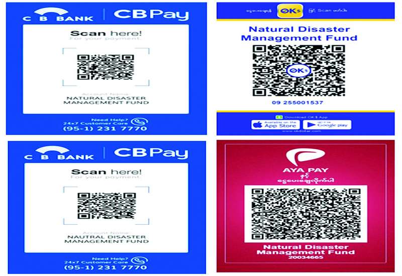 ၁။ မြန်မာနိုင်ငံတွင် ရာဂီမုန်တိုင်းနှင့်ဆက်စပ်၍ ရေဘေးများဖြစ်ပွားလျက်ရှိရာ ရေဘေးသင့်ပြည်သူများအတွက် ပါဝင်လှူဒါန်းလိုသော စေတနာရှင်ပြည်သူများအနေဖြင့် ဘဏ်များမှတစ်ဆင့် လှူဒါန်းလိုပါက မြန်မာငွေစာရင်းအမှတ် OA-011834၊ နိုင်ငံခြားငွေစာရင်းအမှတ် (0111284000000063) နှင့် (EDN-600018)တို့သို့ လည်းကောင်း၊ မိုဘိုင်းငွေပေးချေမှုစနစ်ဖြင့် လှူဒါန်းလိုပါက K Pay နှင့် Wave Money များသို့ ထည့်ဝင်လှူဒါန်းနိုင်သည့် QR Code များ၊ ဖုန်းနံပါတ်များကို ကြေညာပြီးဖြစ်ပါသည်။