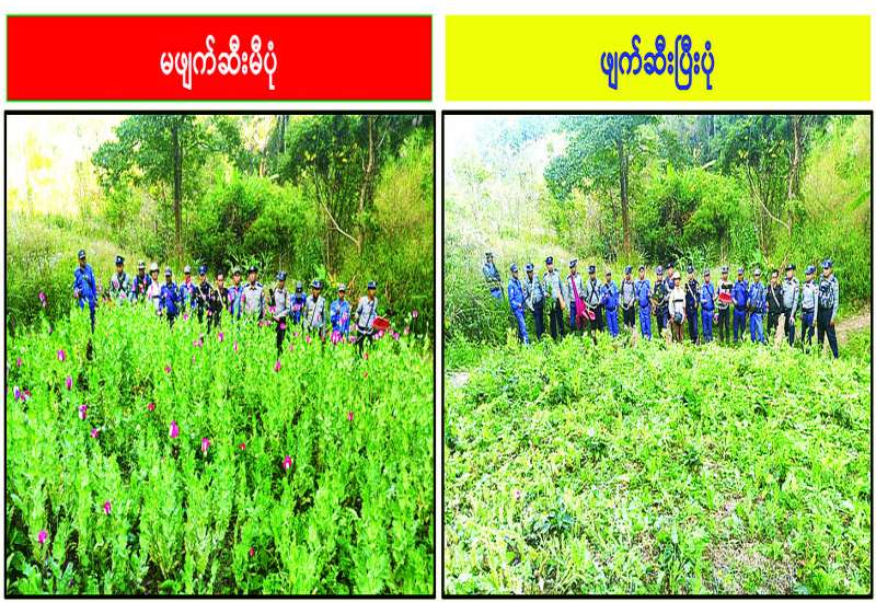 မြန်မာနိုင်ငံဖြင့် မူးယစ်ဆေးဝါးတိုက်ဖျက်ရေးလုပ်ငန်းစဉ်များကို ကုလသမဂ္ဂအပါအဝင် အိမ်နီးချင်းနိုင်ငံများ၊ အာဆီယံအဖွဲ့ဝင်နိုင်ငံများ၊ မဲခေါင်ဒေသတွင်းနိုင်ငံများ၊ ဘင်းမ်စတက်အဖွဲ့ဝင်နိုင်ငံများ၊ နိုင်ငံတကာမူးယစ်ဆေးဝါးထိန်းချုပ်ရေးဆိုင်ရာ အဖွဲ့အစည်းများနှင့် ပူးပေါင်း၍ ပိုမိုတိုးမြှင့်ဆောင်ရွက်လျက်ရှိသည့်အပြင် မူးယစ်ဆေးဝါးတိုက်ဖျက်ရေး လုပ်ငန်းစဉ်များတွင် တစ်ခုအပါအဝင်ဖြစ်သည့် ဘိန်းခင်းများ ဖျက်ဆီးမှုကိုလည်း ဆောင်ရွက်လျက်ရှိသည်။