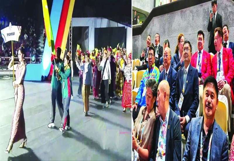 ထိုင်းနိုင်ငံက အိမ်ရှင်အဖြစ် လက်ခံကျင်းပသည့် (၃၃) ကြိမ်မြောက် အရှေ့တောင်အာရှအားကစားပြိုင်ပွဲ ဖွင့်ပွဲအခမ်းအနားကို ယမန်နေ့ညနေပိုင်းက ထိုင်းနိုင်ငံဘန်ကောက်မြို့ရှိ Rajamangala National Stadium ၌ ကျင်းပရာ မြန်မာနိုင်ငံအိုလံပစ်ကော်မတီဥက္ကဋ္ဌ အားကစားနှင့်လူငယ်ရေးရာဝန်ကြီးဌာနနှင့် ဟိုတယ်နှင့်ခရီးသွားလာရေးဝန်ကြီးဌာန ပြည်ထောင်စုဝန်ကြီး Jeng Phang နော်တောင်၊ ပြန်ကြားရေးဝန်ကြီးဌာန ဒုတိယဝန်ကြီး ဦးရဲတင့်၊ ရန်ကုန်တိုင်းဒေသကြီး လူမှုရေးရာဝန်ကြီး ဦးဌေးအောင်၊ မြန်မာအားကစားအဖွဲ့ခေါင်းဆောင်နှင့် တာဝန်ရှိသူများ၊ မြန်မာအားကစားအဖွဲ့မှ အုပ်ချုပ်သူ၊ နည်းပြများနှင့် အားကစားသမားများ၊ ပြိုင်ပွဲဝင်နိုင်ငံများမှ တာဝန်ရှိသူများ၊ ပြိုင်ပွဲဝင်အသင်းများမှ အုပ်ချုပ်သူ၊ နည်းပြများနှင့် အားကစားသမားများ တက်ရောက်ခဲ့ကြသည်။