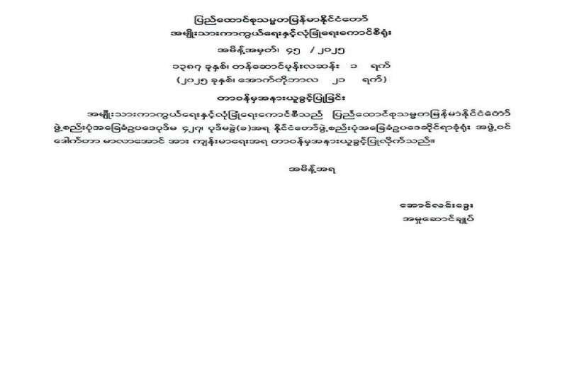 ရန်ကုန်မြို့နှင့် မန္တလေးမြို့အတွက် ရည်ညွှန်းလက်ကားဈေးနှုန်းများနှင့် ပြည်ထောင်စုနယ်မြေ နေပြည်တော်၊ တိုင်းဒေသကြီး/ပြည်နယ် မြို့တော်များအတွက် ရည်ညွှန်းလက်လီစျေးနှုန်းများ