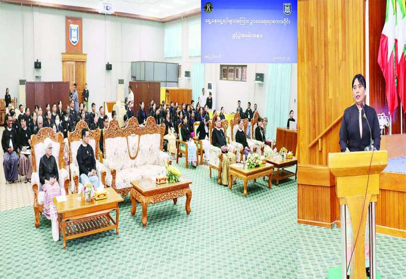ပြည်ထောင်စုသမ္မတမြန်မာနိုင်ငံတော်ယာယီသမ္မတ နိုင်ငံတော်လုံခြုံရေးနှင့်အေးချမ်း သာယာရေးကော်မရှင်ဥက္ကဋ္ဌ ဗိုလ်ချုပ်မှူးကြီး မင်းအောင်လှိုင်သည် ပြည်ထောင်စုတိုင်းရင်းသား လူမျိုးများဖွံ့ဖြိုးရေးတက္ကသိုလ် ပညာရေးဘွဲ့ ၅ နှစ်သင်တန်းအမှတ်စဉ်(၇)မှ ကျောင်းသား၊ ကျောင်းသူများကို ယနေ့နံနက်ပိုင်းတွင် နေပြည်တော်ရှိ မြန်မာအပြည်ပြည်ဆိုင်ရာကွန်ဗင်းရှင်း ဗဟိုဌာန(၁)(MICC-1)၌ တွေ့ဆုံအမှာစကားပြောကြားသည်။