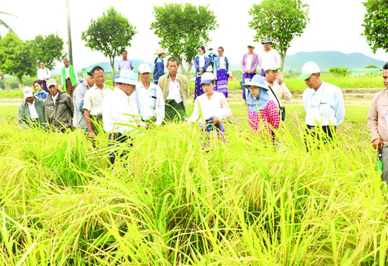 စိုက်ပျိုးရေး၊ မွေးမြူရေးနှင့်ဆည်မြောင်းဝန်ကြီးဌာန ဒုတိယဝန်ကြီး ဒေါက်တာတင်ထွဋ်သည် ယမန်နေ့နံနက်ပိုင်းက နေပြည်တော်ရေဆင်းစိုက်ပျိုးရေး သုတေသနဦးစီးဌာန စပါးသုတေသနဌာနစုတွင် ဆောင်ရွက်ထားရှိသော အထွက်ကောင်းစပါးမျိုး ၂ မျိုး၊ ၃မျိုးနှင့် ၄ မျိုးအထိ မျိုးစပ်မွေးမြူထားသည့် သားဆက်လိုင်းများကို လာရောက်အကဲဖြတ် လေ့လာကြသည့် ဒက္ခိဏသီရိမြို့နယ်မှ တောင်သူများကို စပါးမျိုးစပ်ခြင်းနှင့် စပါးမျိုးသားဆက်လိုင်းရွေးချယ်ခြင်း နည်းပညာရပ်ဆိုင်ရာသုတနည်းပညာများကို ရှင်းလင်းပြောကြားသည်။