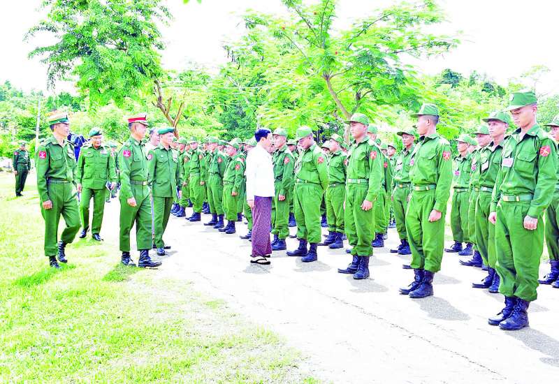 ပြည်ထောင်စုနယ်မြေ နေပြည်တော်ရှိ ပြည်သူ့စစ်မှုထမ်းသင်တန်းအမှတ်စဉ် (၃/၂၀၂၄) ဖွင့်ပွဲအခမ်းအနားကို ယနေ့နံနက်ပိုင်းတွင် နေပြည်တော်နယ်မြေခံလေ့ကျင့်ရေးကျောင်း၌ ကျင်းပရာ နေပြည်တော်ကောင်စီဥက္ကဋ္ဌ ဦးသန်းထွန်းဦး၊ နေပြည်တော်တိုင်းစစ်ဌာနချုပ် တိုင်းမှူး ဗိုလ်ချုပ်စိုးမင်း၊ နေပြည်တော်ကောင်စီဝင်များ၊ ဌာနဆိုင်ရာများ၊ လေ့ကျင့်ရေးကျောင်း ခေတ္တကျောင်းအုပ်ကြီးနှင့် တပ်မတော်အရာရှိကြီးများ၊ ခရိုင်/မြို့နယ်စီမံအုပ်ချုပ်ရေးအဖွဲ့ ဥက္ကဋ္ဌများနှင့် အဖွဲ့ဝင်များ၊ သင်တန်းသားများ တက်ရောက်ကြသည်။