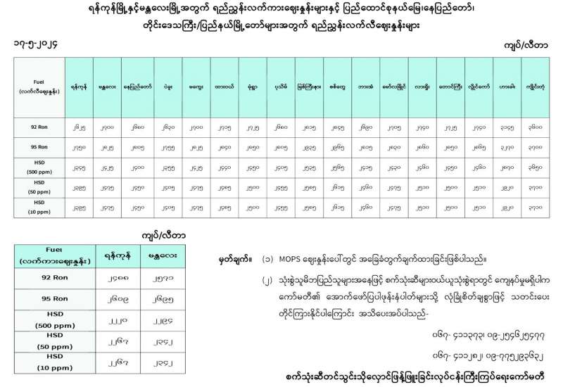ရန်ကုန်မြို့နှင့် မန္တလေးမြို့အတွက် ရည်ညွှန်းလက်ကားဈေးနှုန်းများနှင့် ပြည်ထောင်စုနယ်မြေ နေပြည်တော်၊ တိုင်းဒေသကြီး/ပြည်နယ် မြို့တော်များအတွက် ရည်ညွှန်းလက်လီဈေးနှုန်းများ